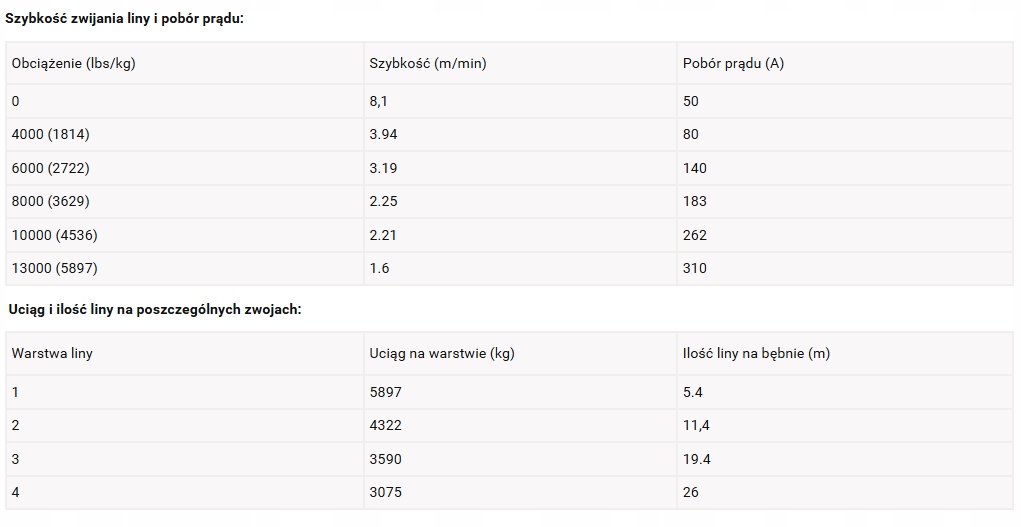 • Uciąg w poślizgu: 13000 lbs [5897 kg]