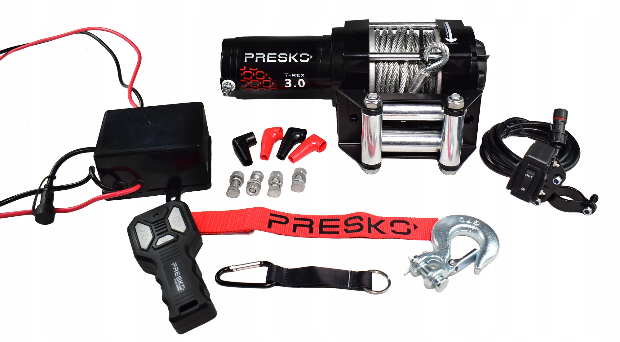 WYCIĄGARKA ELEKTRYCZNA PRESKO T-REX3.0 12V Z LINĄ STALOWĄ O UCIĄGU 1360kg (3000 LBS)