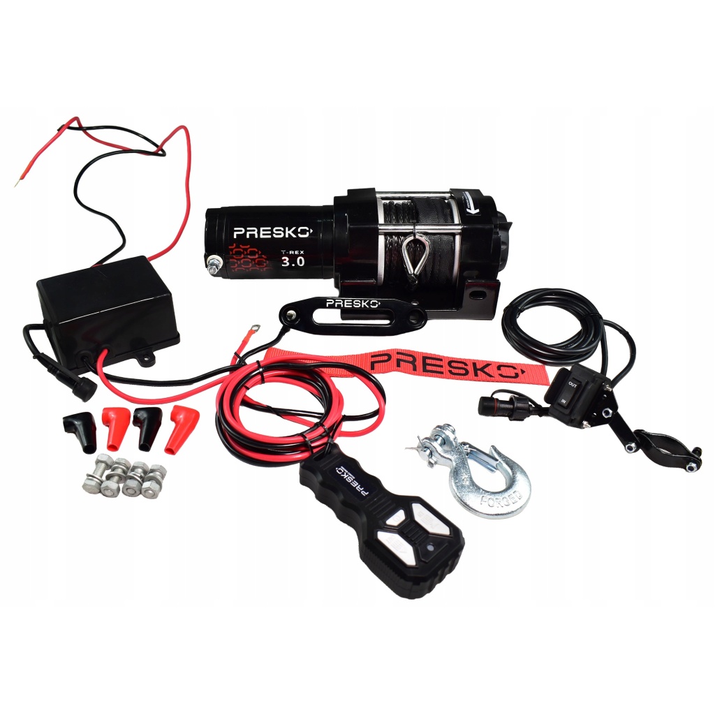 Wyciągarka PRESKO T-REX3.0S 12V 1360kg QUAD PŁUG ATV UTV LINA SYNTETYCZNA