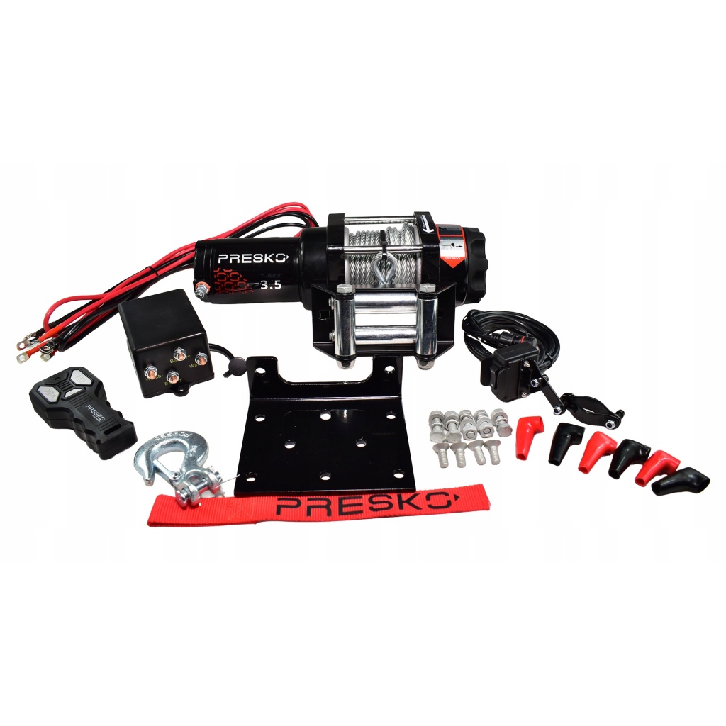 Wyciągarka elektryczna PRESKO T-REX 12V 1,5T QUAD PŁUG ATV UTV LINA STALOWA